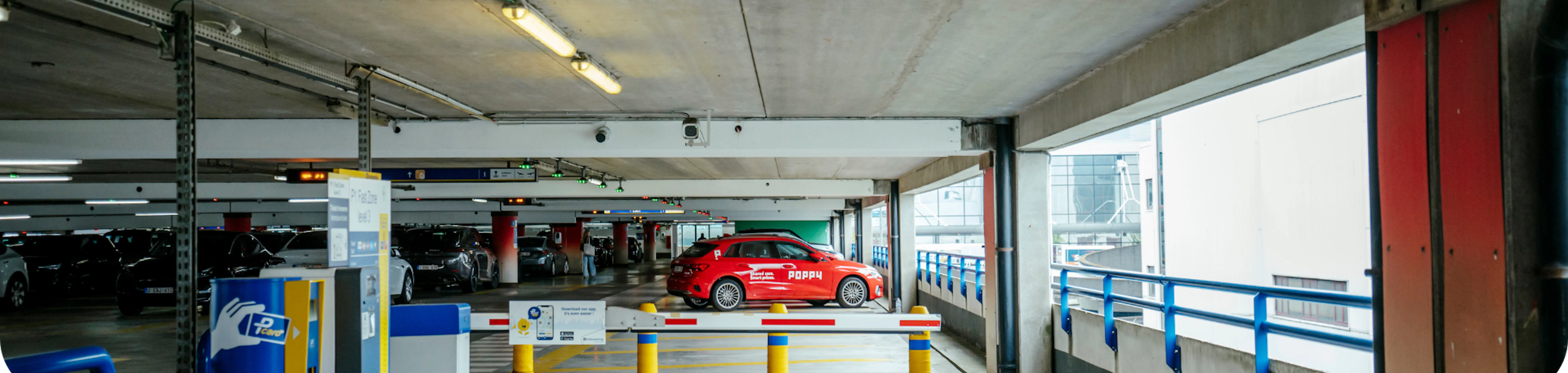 The barrier is equipped with license plate recognition. If it doesn’t work, don’t worry; simply press the ‘call’ button, and the parking employees will open the barrier for Poppy cars.