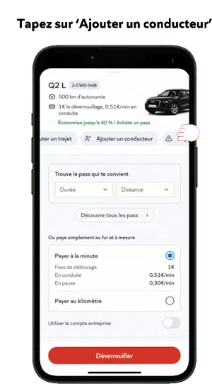 La fonction Deuxième Conducteur permet aux utilisateurs d'inviter une autre personne à partager la conduite. En générant un QR code dans l'application, le deuxième conducteur peut également verrouiller, déverrouiller et terminer le trajet. Les deux conducteurs sont entièrement assurés pendant le trajet.
